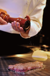 前菜、スープ、フォアグラ又は魚介鉄板焼き、車海老、サラダ、ご飯セット(香物、味噌汁)、コーヒー又は紅茶、